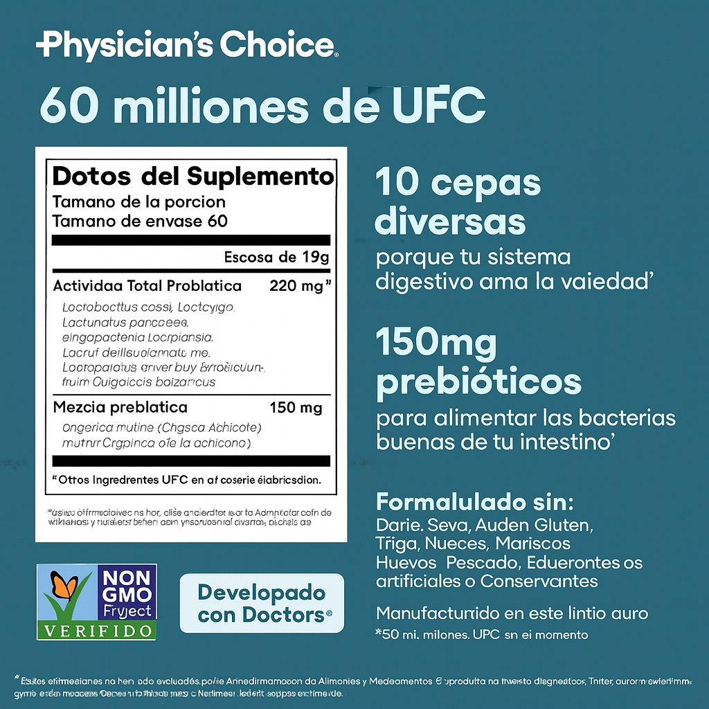 Este suplemento fue desarrollado con el respaldo de expertos para fortalecer tu salud digestiva, inmunológica y general. Cada cápsula contiene 60 mil millones de probióticos activos que equilibran la flora intestinal, mejoran la absorción de nutrientes y promueven la regularidad natural.